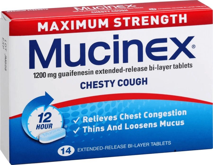 Mucinex contains the ingredient guaifenesin which is an expectorant. It helps loosen congestion in your chest and throat, making it easier to cough out through your mouth. Mucinex is used to reduce chest congestion caused by the common cold, infections, or allergies.